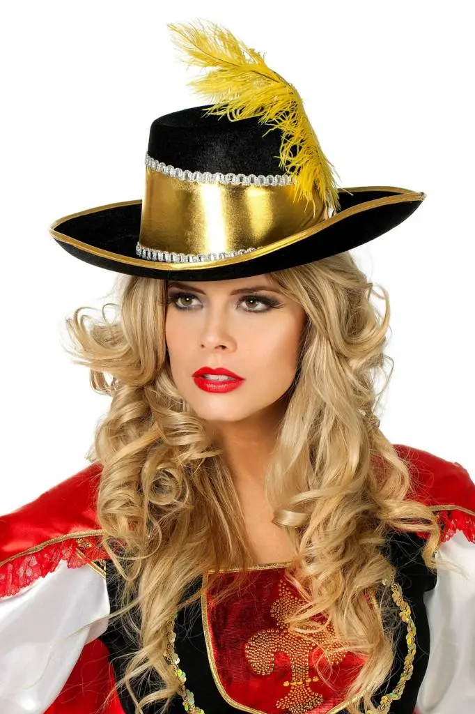 Musketiershoed Met Gekleurde Band En Veer Goud