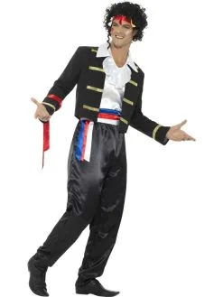 Back to the Eighties met dit geweldige 80s New Romantic Kostuum, bestaande uit de zwarte jas met broek, shirt en hoofdband.Â