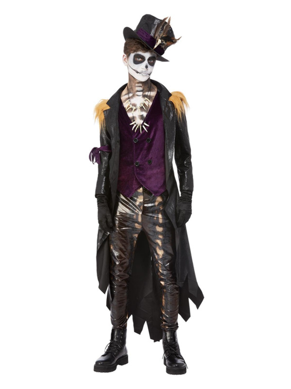 Deluxe Voodoo Witch Doctor Kostuum, bestaande uit het jasje, mock top, hoed en ketting. Met dit kostuum ben je in één keer klaar voor jouw Halloween feestje. Wij verkopen ook het Deluxe Voodoo Witch Doctor Kostuum voor dames.