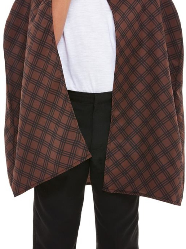 Detective Kit, bestaande uit de bruine cape met bijpassende cap en vergrootglas.