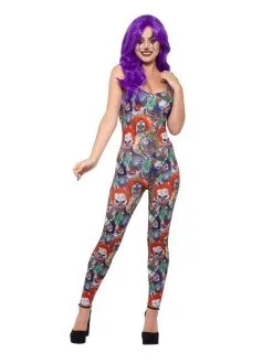 Fever Creepy Clown Kostuum, bestaande uit de Multi-Gekleurde bodysuit, combineer dit kostuum met de zweep, hoedje, schmink en pruik en je bent klaar voor jouw Halloween Party.