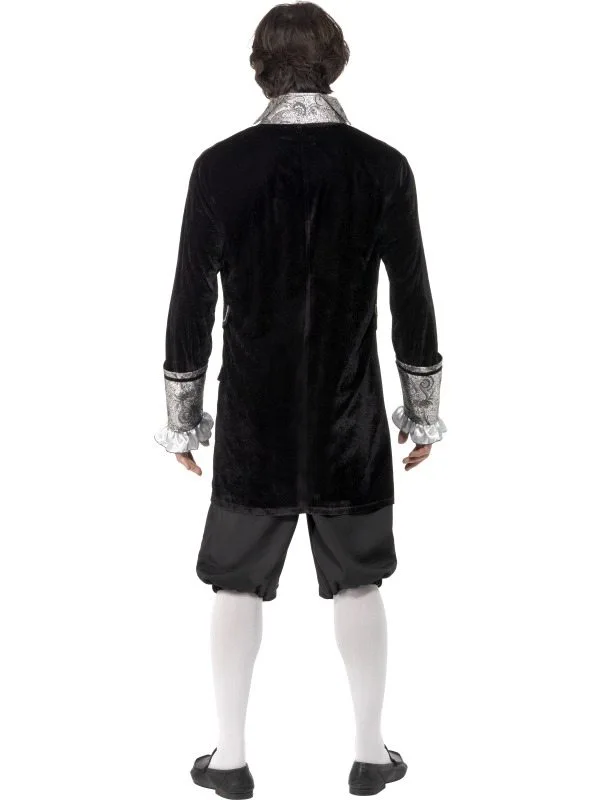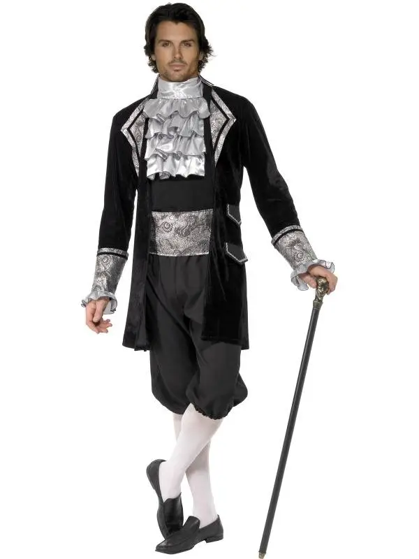 Fever Male Baroque Vampier Kostuum. Mooie verkleedkostuum met mooie jas, broek, brede riem en cravat,