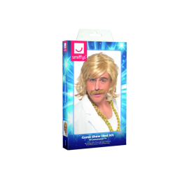 Be a real Showmaster met dit geweldige Game Show Host Setje, bestaande uit de blonde pruik met bijpassende snor. De ketting verkopen wij los.