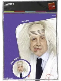 Gekke Wetenschapper Pruik met kale bovenkant en wit/grijs wild haar.Â