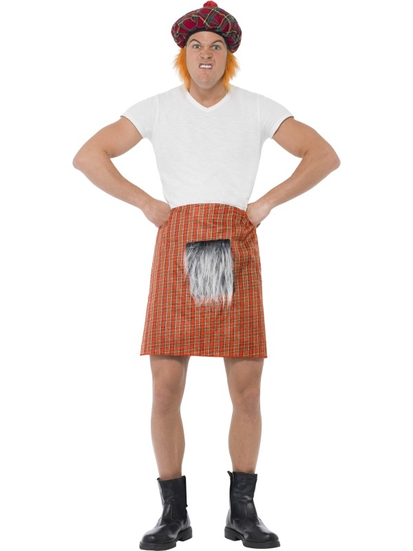 Grappige tartan (geruite, wollen stof, waar de Schotse kilt van wordt gemaakt) kilt met daaruit wat overtollig haar voor een extra grappig effect. Leuk voor vrijgezelllenfeesten, carnaval en andere themafeesten. Maak deze verkleedkleding af met een bijpassende hoed.Â