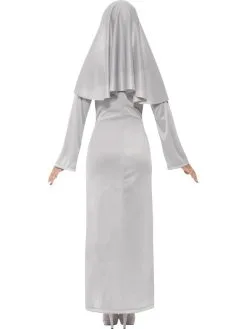 Gothic Nonnen Verkleedkleding in het grijs. De nonnenkleding is voorzien van jurk tot boven de enkels en een hoofdstuk. Leuk voor met Halloween en griezelige Gothic feesten.