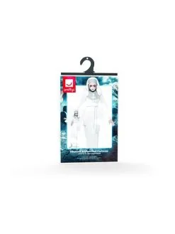 Haunted Asylum Nun Kostuum, bestaande uit de witte jurk met riem en nonnenkap. Maak de look compleet met een bijpassende pruik, schmink en panty en je bent klaar voor Halloween.