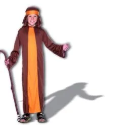 Herder Kinder Kostuum – lang bruinkleurig gewaad, inclusief hoofddoek.
