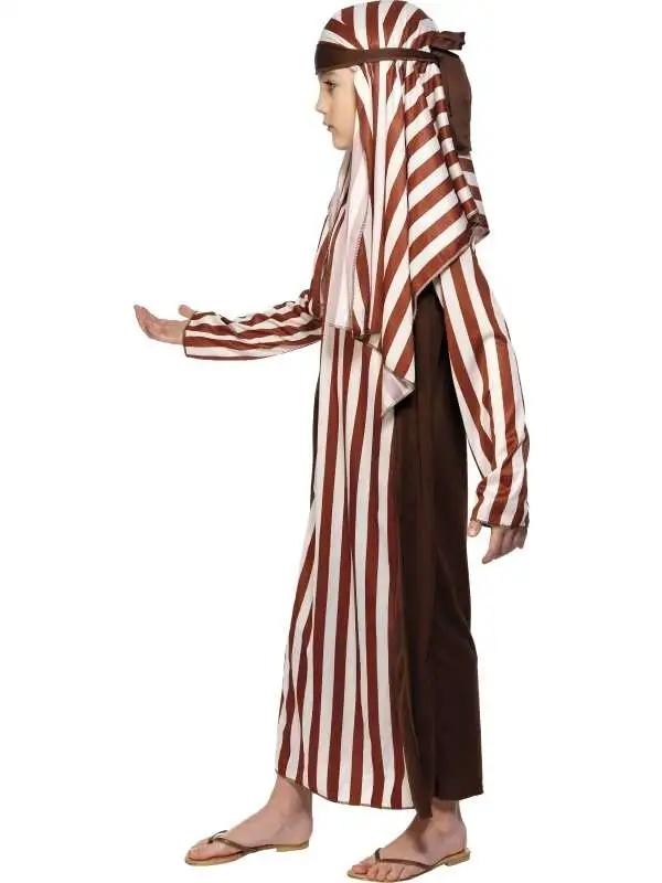 Herder Kinder Kostuum – lang wit – rood gestreept gewaad, inclusief hoofddoek.