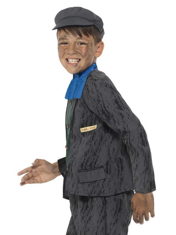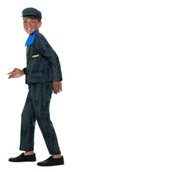 Horrible Histories Miner Kostuum, bestaande uit de top met broek, das en hoed. Leuk voor Carnaval of een Musical.