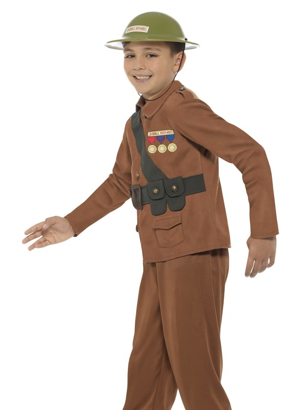 Horrible Histories Soldier Kostuum, bestaande uit de top met broek en hoed. Leuk voor Carnaval of Musical.