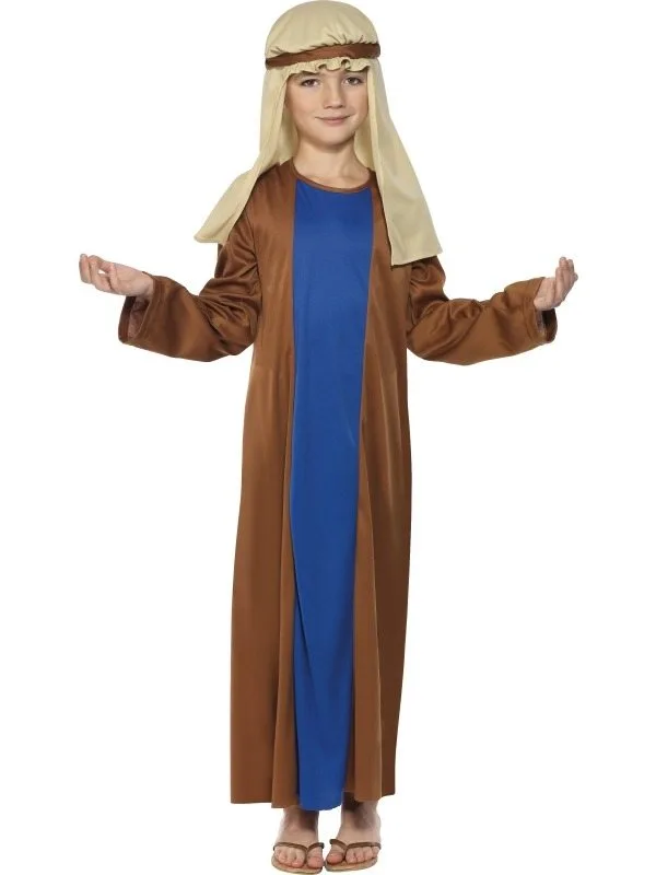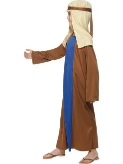 Josef Jongens Kostuum – lang blauw – bruin gewaad, inclusief hoofddoek.
