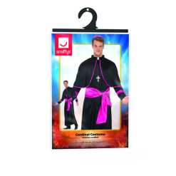 Kardinaal Kostuum, bestaande uit een zwart gewaad met gordellint, keppeltje en kruisketting.