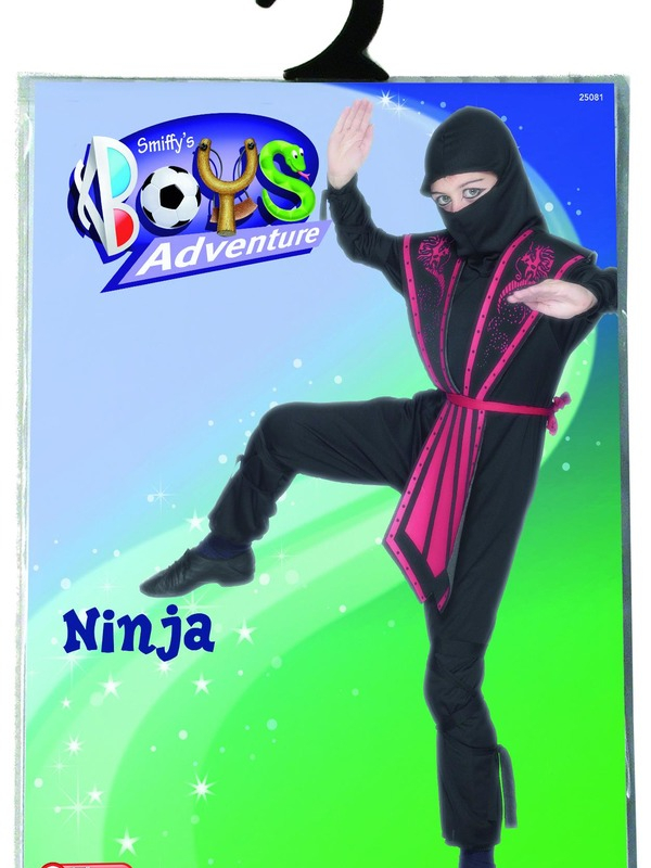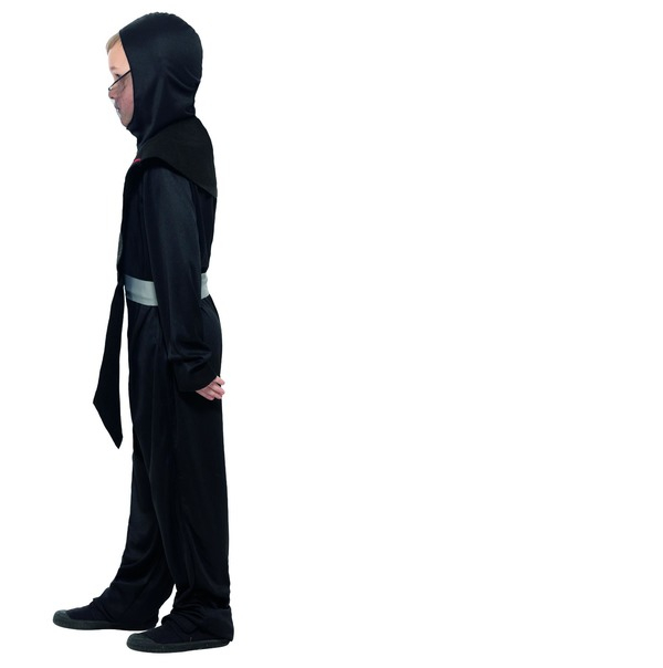 Ninja Kinder Verkleedkleding. Inbegrepen is de zwarte Jumpsuit met muts, riem en banden. Geweldige verkleedkleding voor jongens en meisjes.