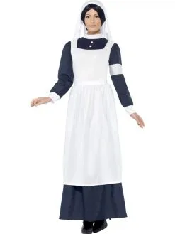 Verpleegster kostuum van voor de oorlog. Met de jurk en het verpleegstershoedje.