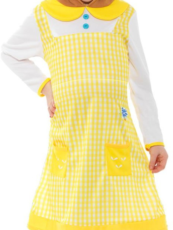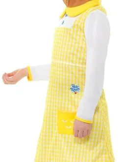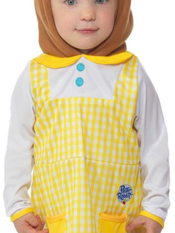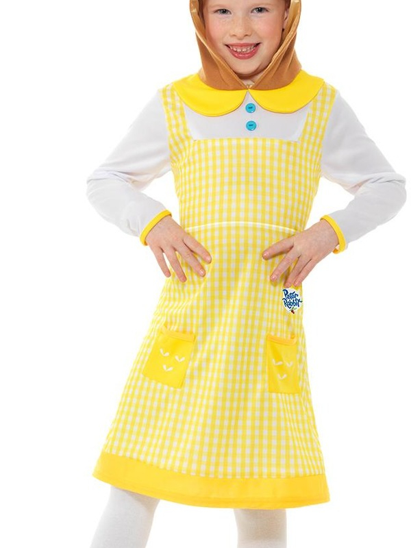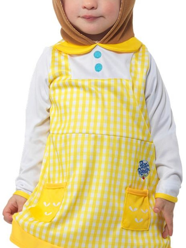 Bekend uit de Film Pieter Konijn, Peter Rabbit, Cottontail Deluxe Kostuum, bestaande uit het gele jurkje met capuchon. Wij verkopen nog meer kostuums uit deze film.