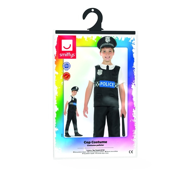 Be the good guy met dit geweldige Politie Kostuum voor jongens. Dit kostuum bestaat uit de top met broek en petje. Maak de look compleet met bijpassende accessoires zoals knuppel,handboeien en badge.