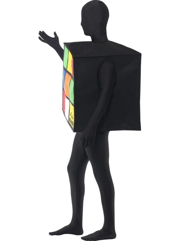 Rubiks kubus unisex verkleedkleding. Origineel kostuum van de Rubiks kubus. U draagt het Rubiks kubus kostuum over het bovenlijf met uw armen er aan de zijkant uit. Met het Rubiks kubus kostuum bent u zeker van een origineel kostuum! Maat: One size. Dit kostuum is alleen de kubus, niet het zwarte pak.