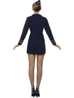 Stewardess Flight Attendant Kostuum, bestaande uit het blauwe jurkje en hoedje.
