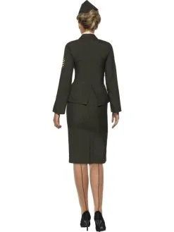 Wartime Officier Dames Verkleedkleding. Inbegrepen is het groene jasje met medaille, de rok, voorkant van het shirt voor onder het jasje, de stropdas en het hoedje. Compleet dames kostuum.