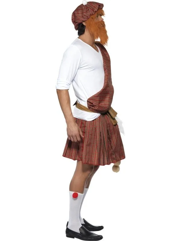 Well Hung Highlander Heren Verkleedkleding. Inclusief muts met haar en baard, shirt, sjerp, kilt, sokken en riem met penis.Â